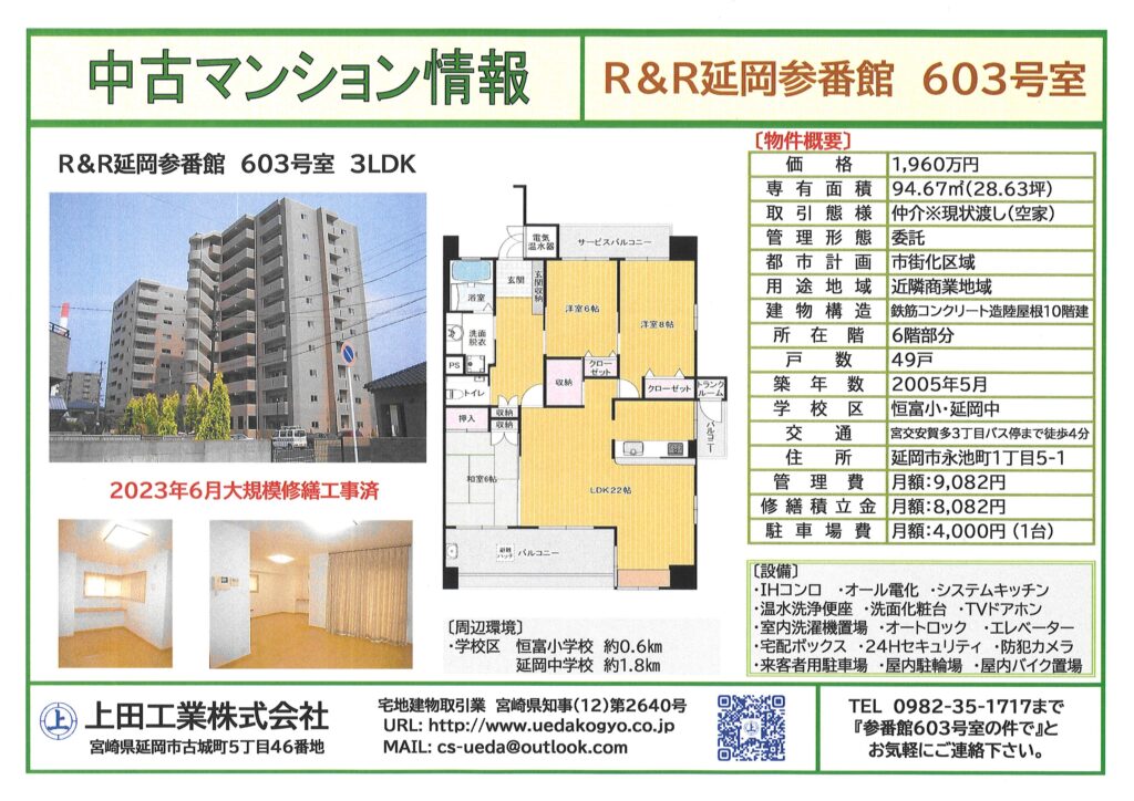 2023年6月に大規模修繕を行ったばかりのオール電化マンションです